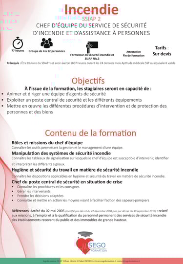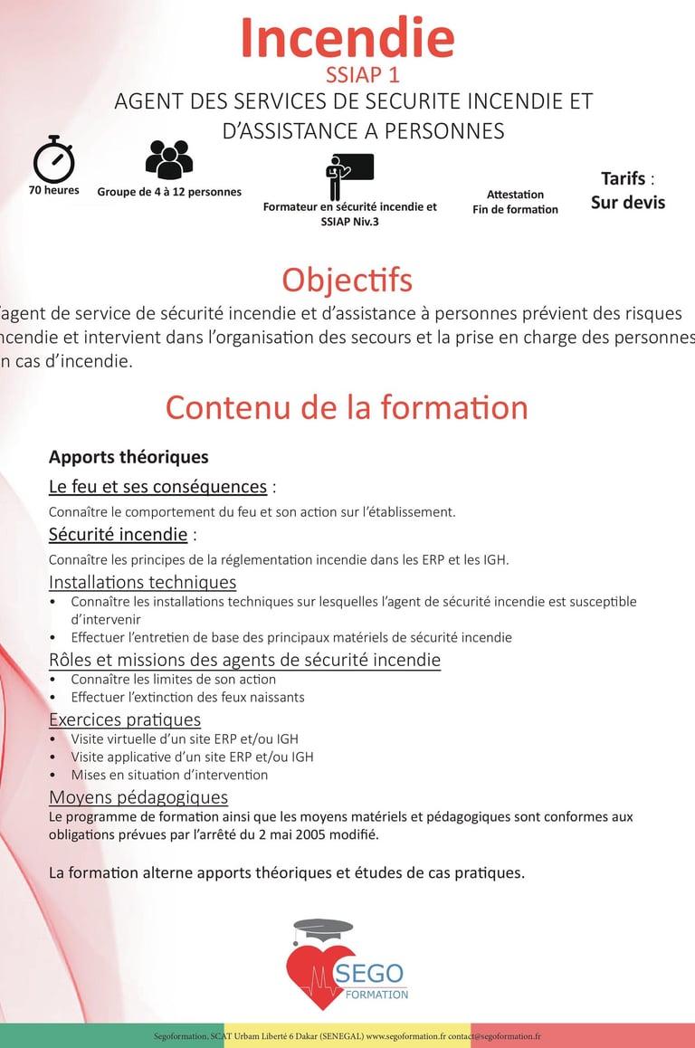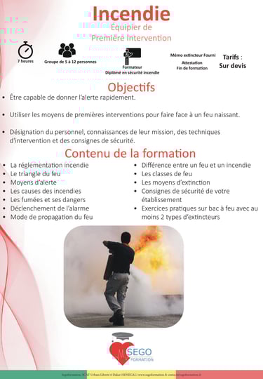 - Intervenants expérimentés, Sapeurs-Pompiers, diplômés SSIAP ou professionnels de la Sécurité Civile
