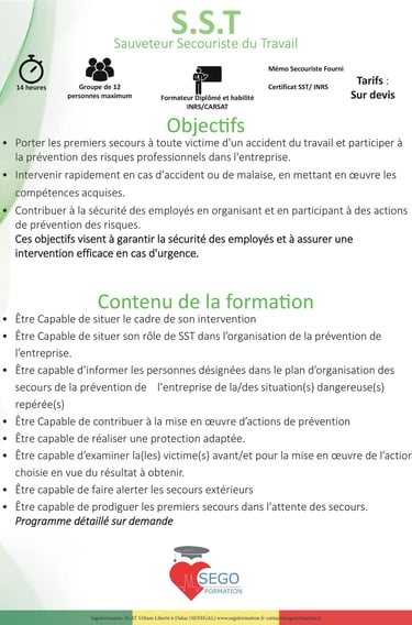 • Prévention des risques : Renforcer la capacité des SST à prévenir les accidents du travail et les maladies professionnelles en améliorant la sensibilisation aux risques.